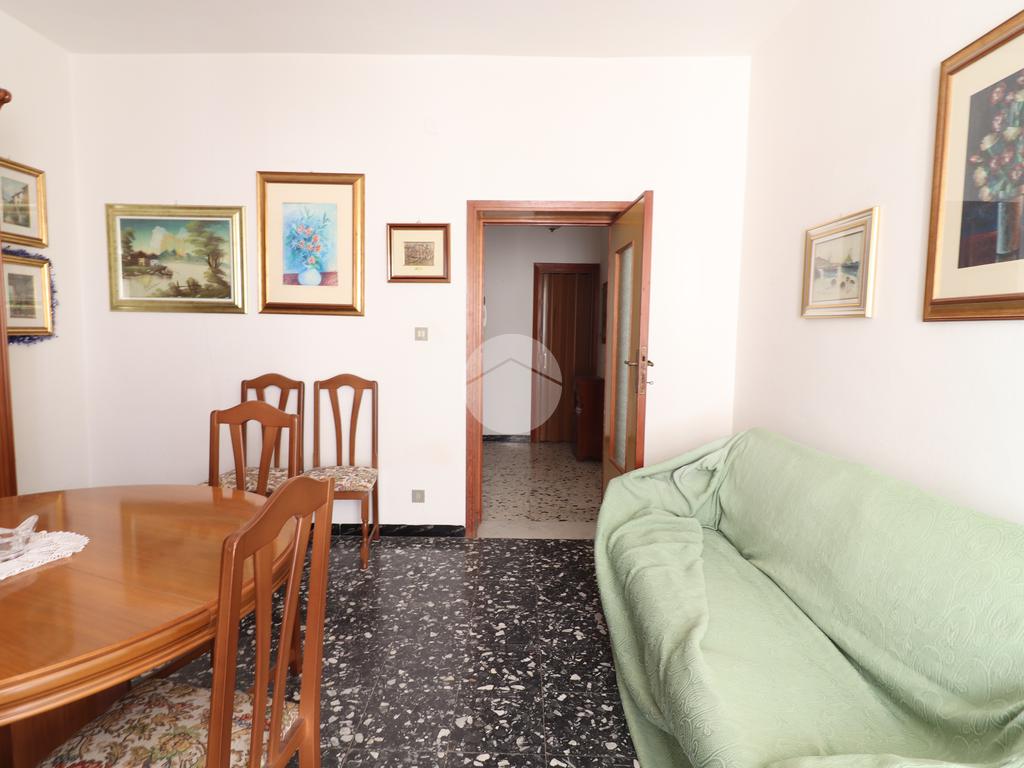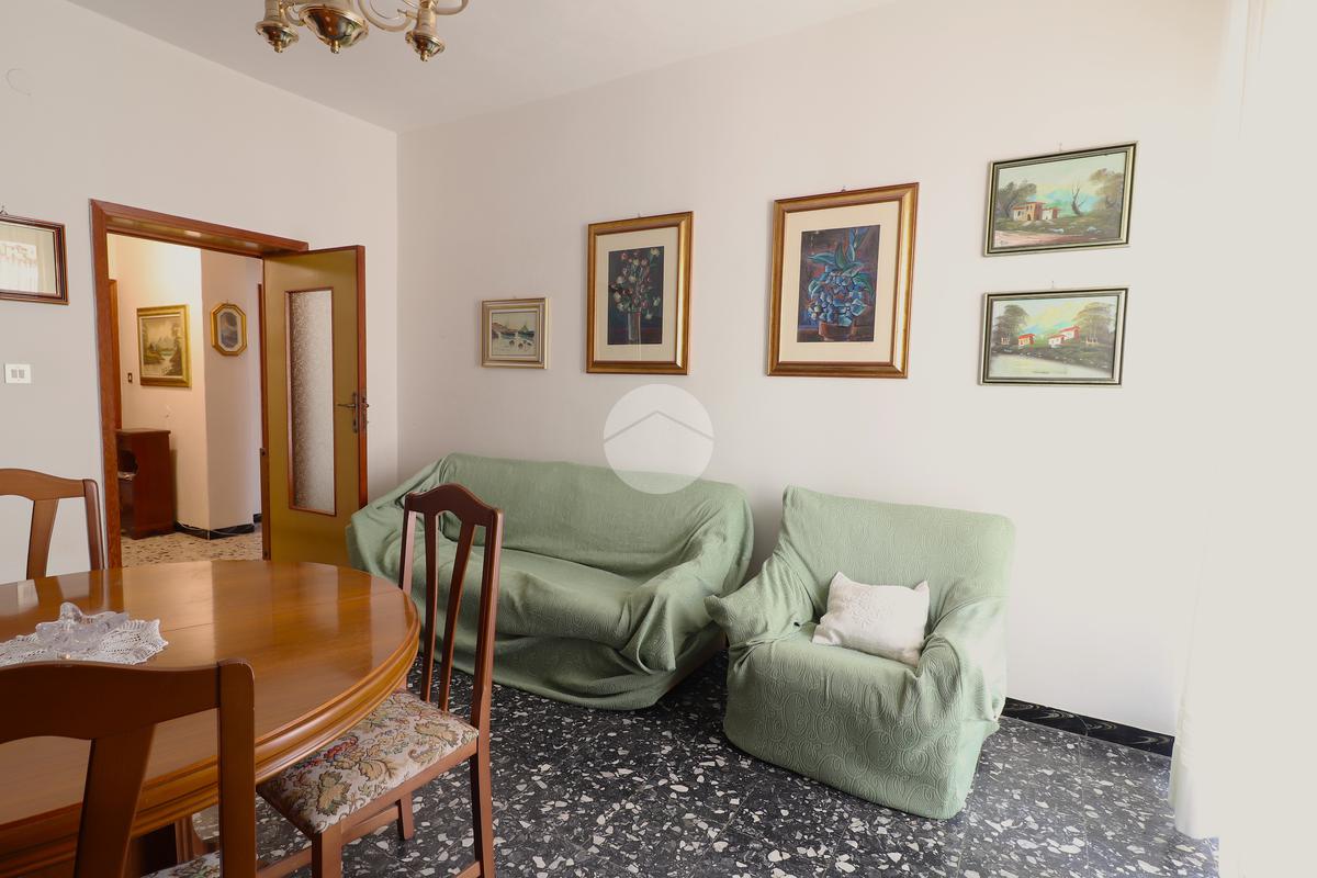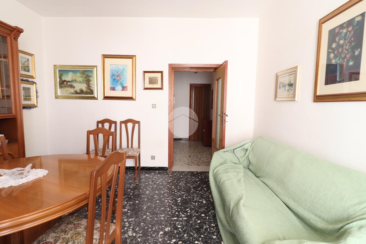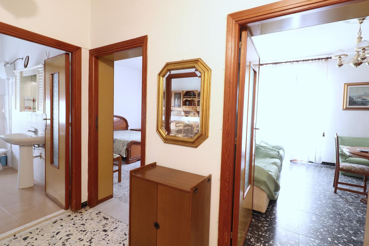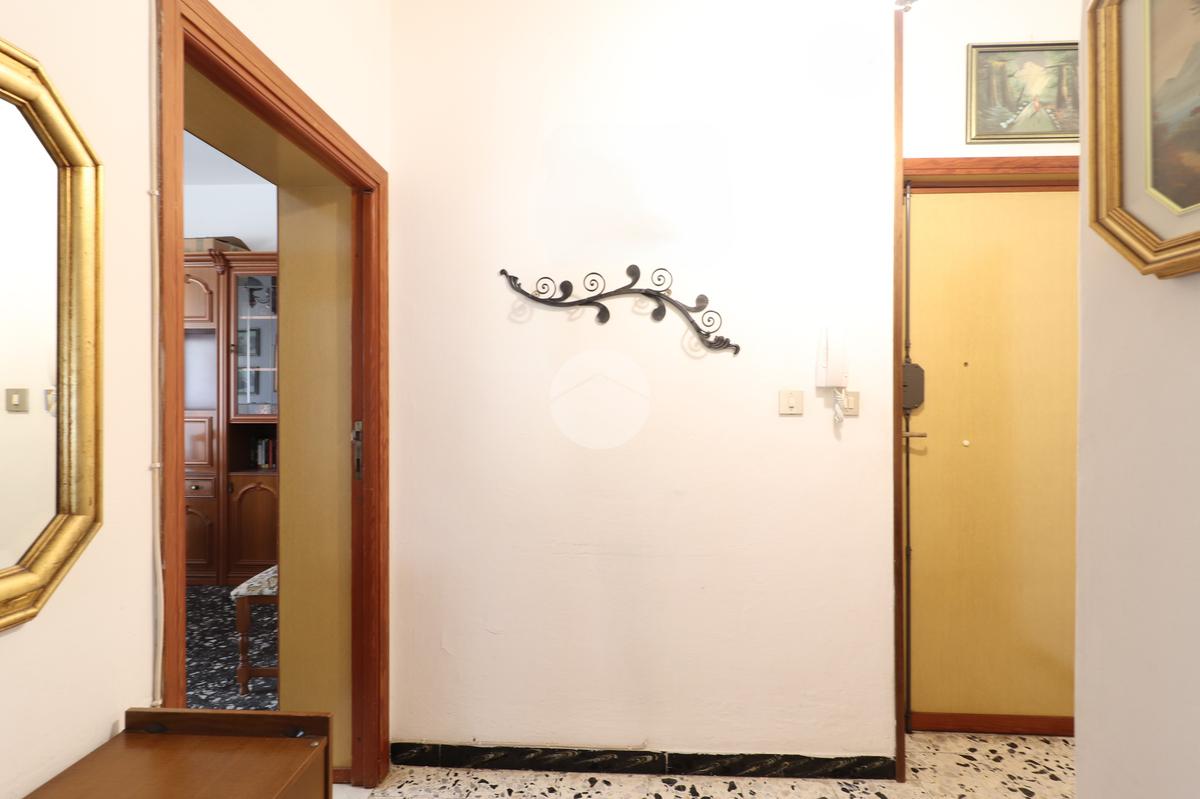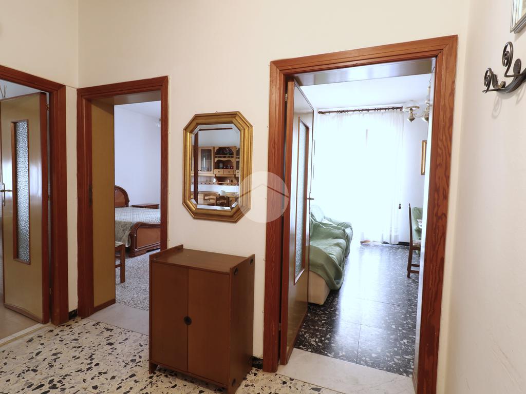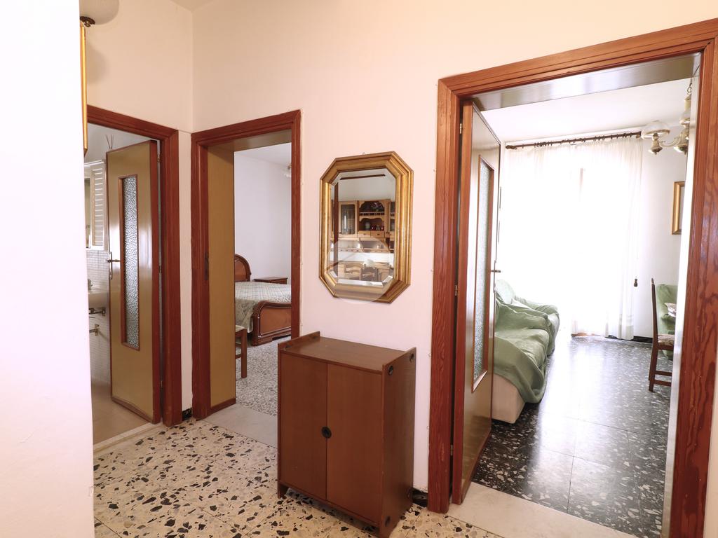 L’ingresso dell’abitazione apre su un pratico ripostiglio sulla sinistra. Proseguendo sulla destra, si accede all’ampio soggiorno, ben illuminato da una porta finestra che conduce al primo balcone su via Mazzini.