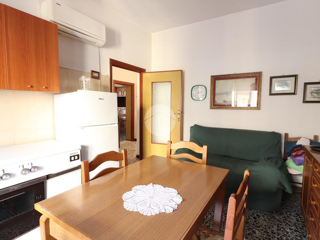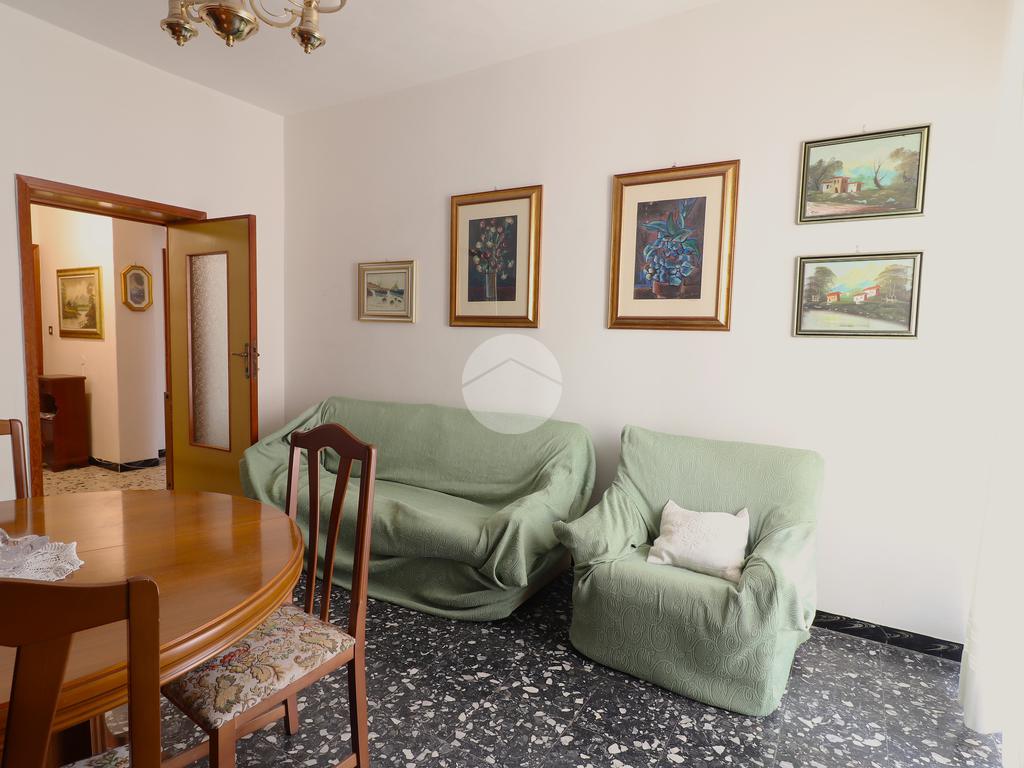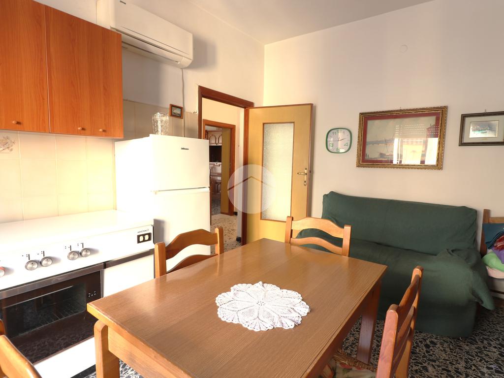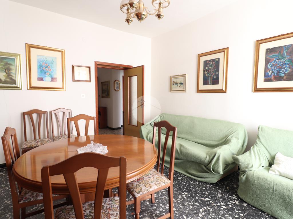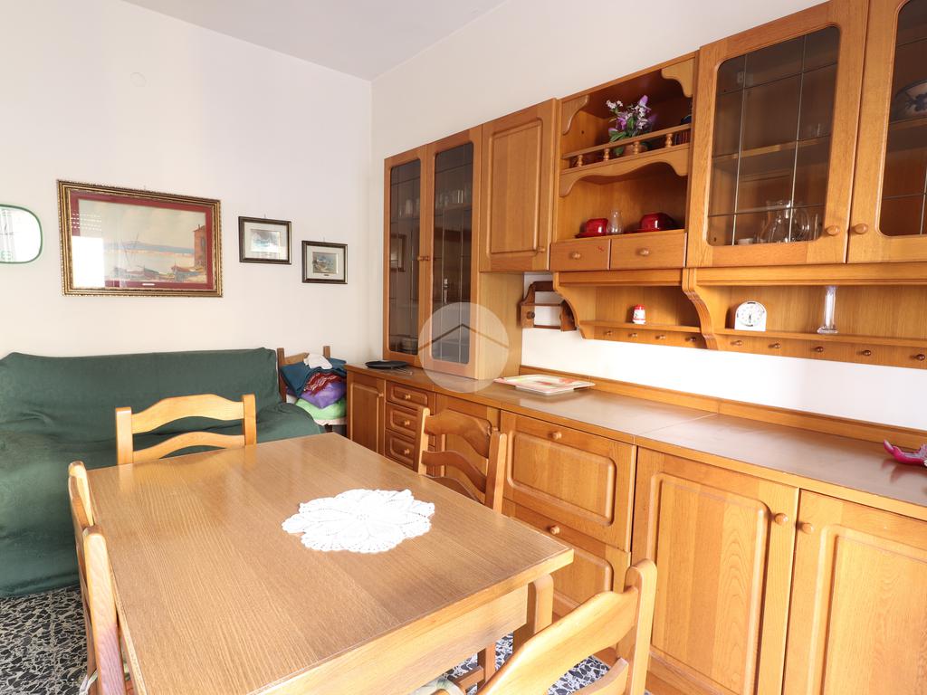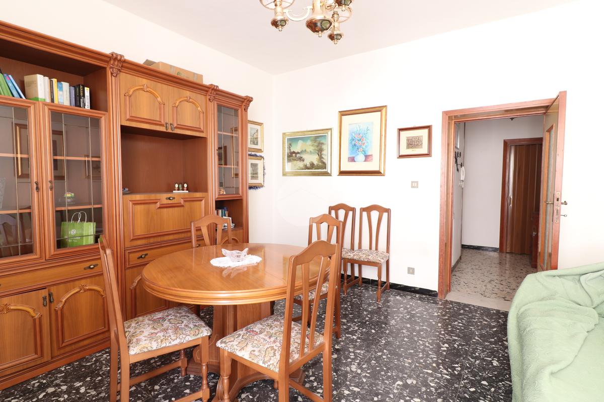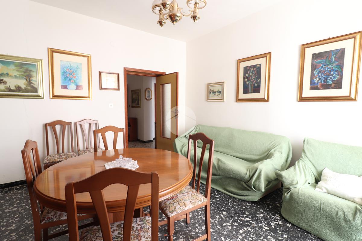 L’ingresso dell’abitazione apre su un pratico ripostiglio sulla sinistra. Proseguendo sulla destra, si accede all’ampio soggiorno, ben illuminato da una porta finestra che conduce al primo balcone su via Mazzini.