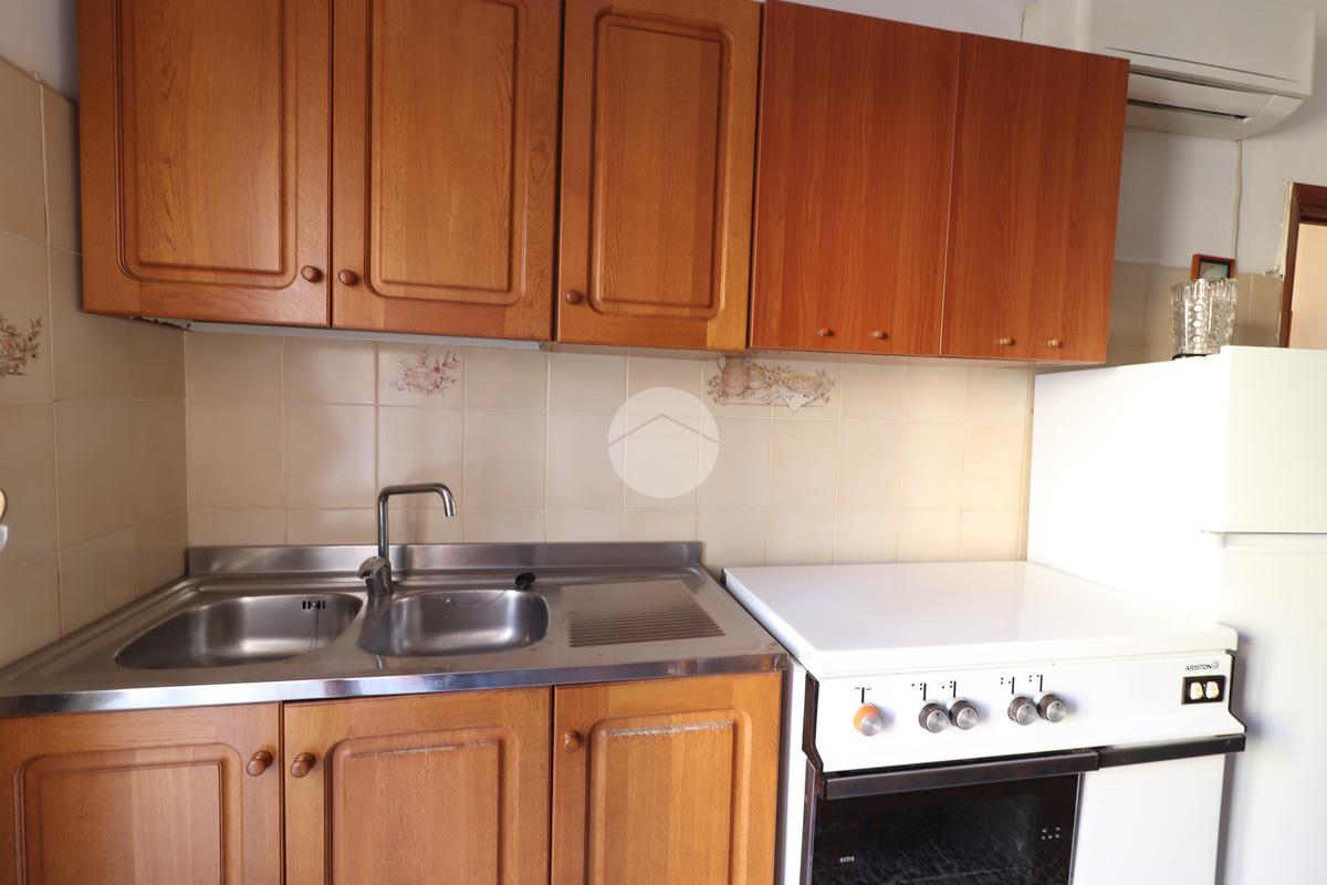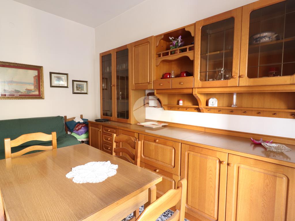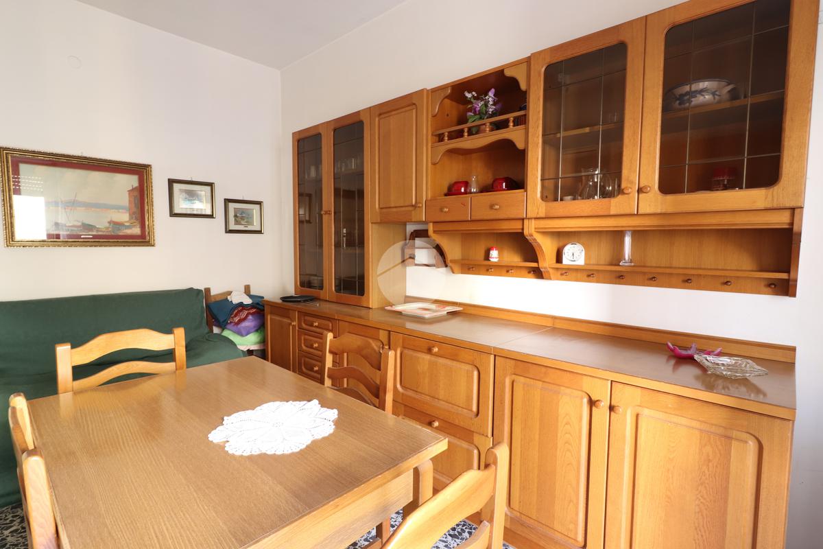 La cucina è abitabile e anch’essa molto luminosa grazie alla seconda porta finestra, che permette l’accesso al balcone affacciato su Via Sanzio.