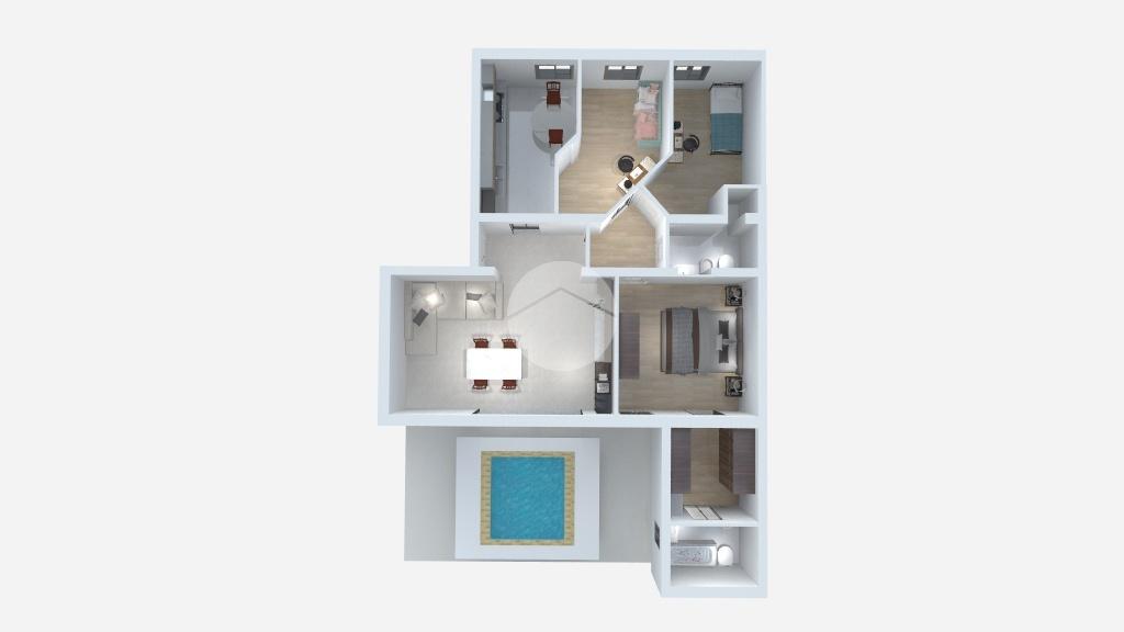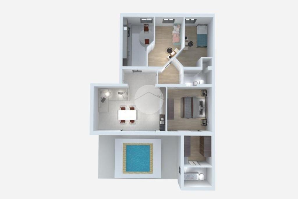 La zona esterna è caratterizzata dalla presenza di una piscina idromassaggio posizionata al centro del cortile e circondata da angoli di verde, perfetta per chi predilige comfort e intimità. Di fianco troviamo un'area attrezzata per il barbecue, completa di zona cucina all'aperto, ideale per organizzare pranzi e cene con amici o la famiglia.