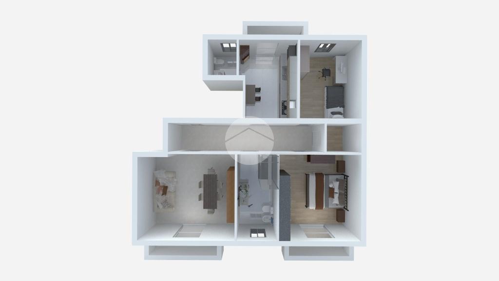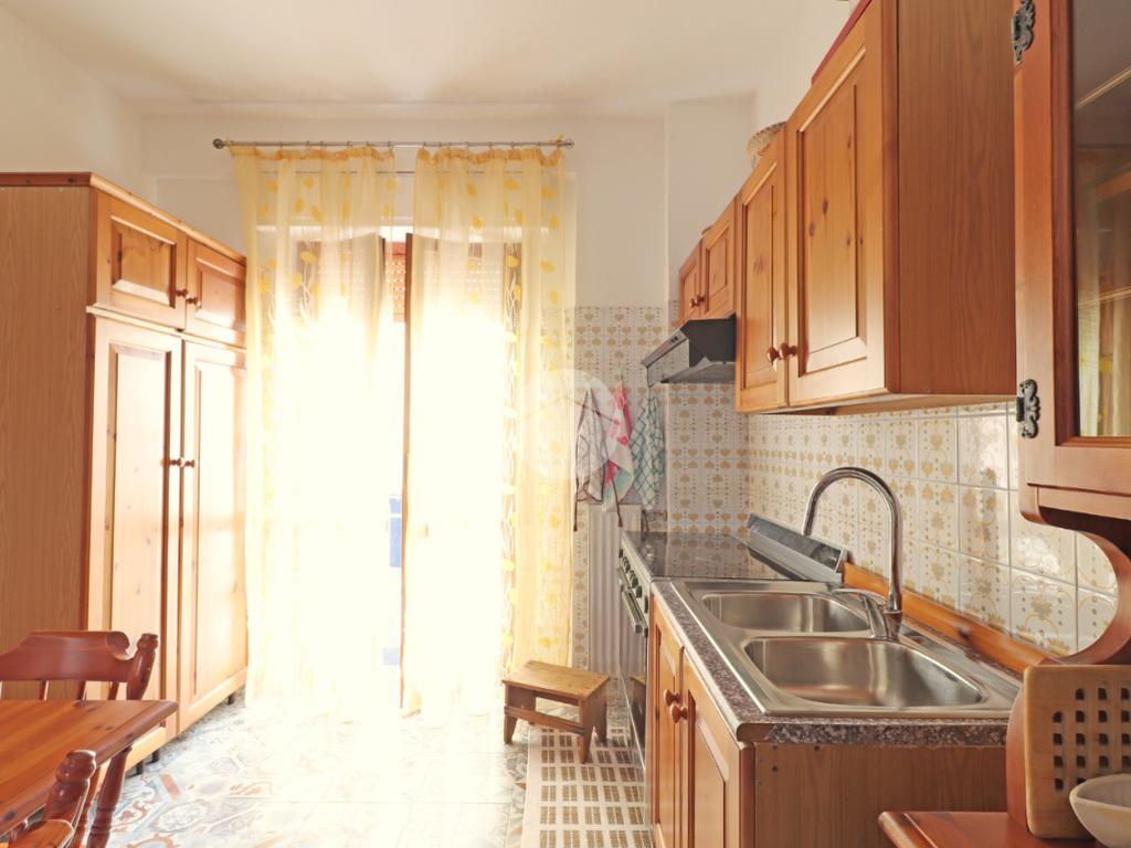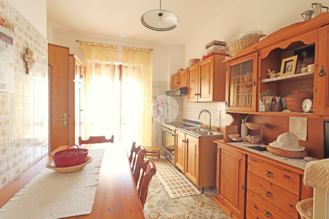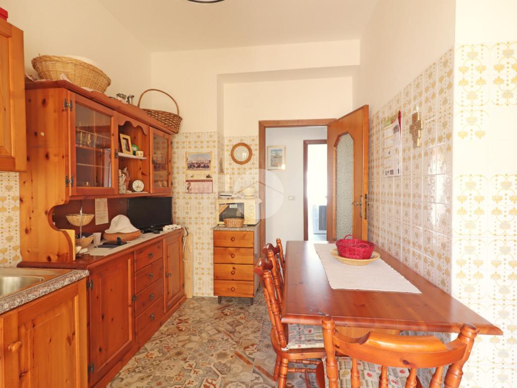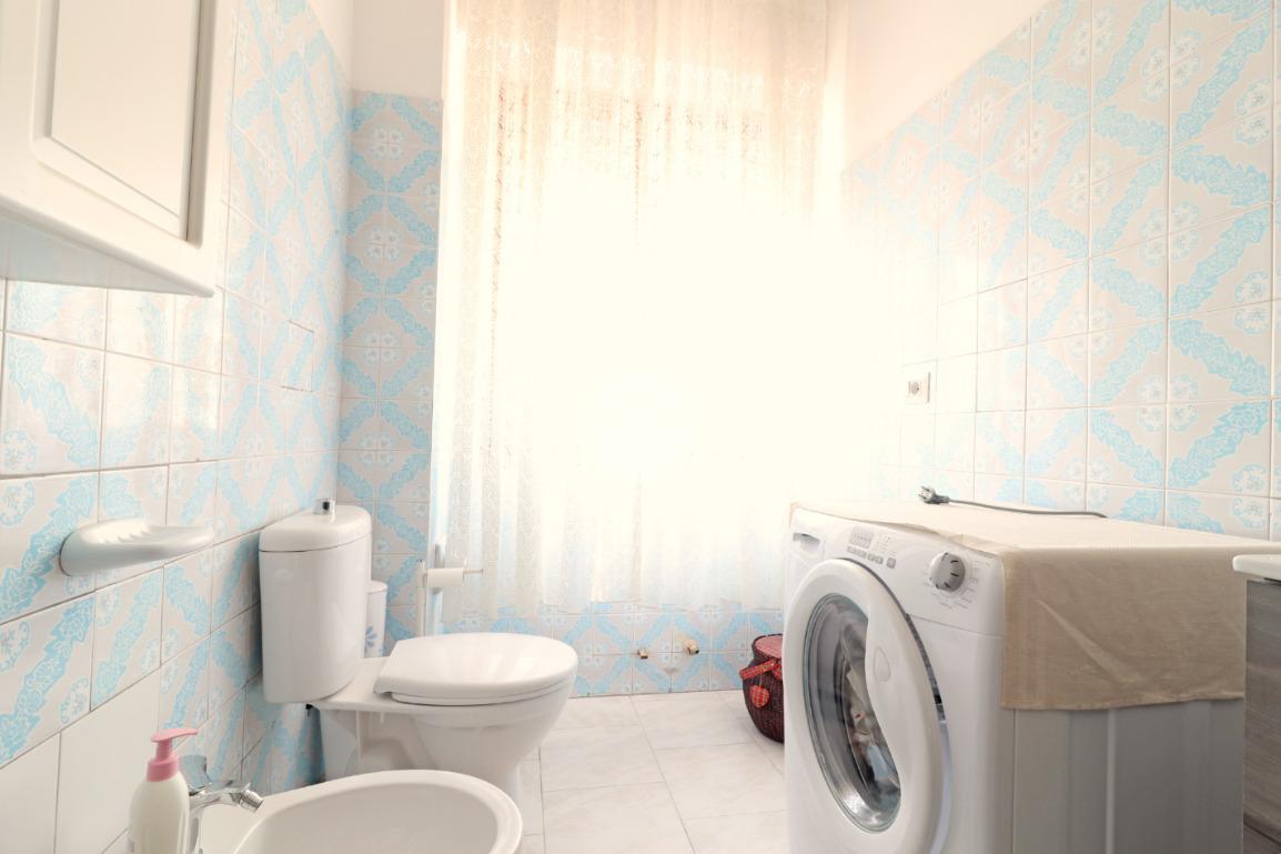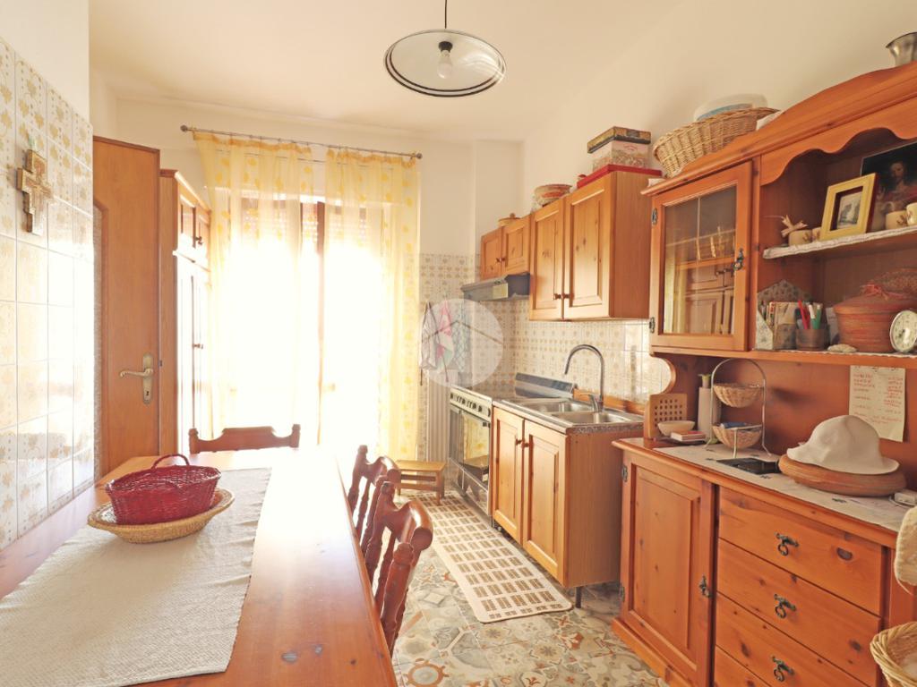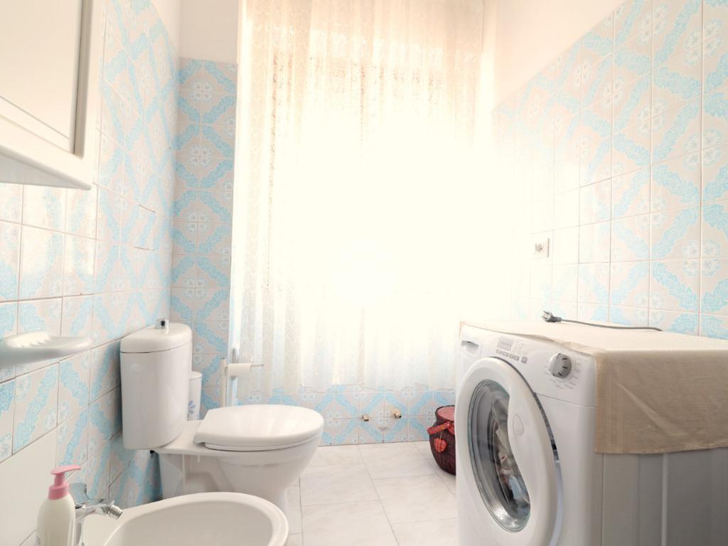 La cucina, ampia e abitabile, dispone di un doppio servizio finestrato adibito a lavanderia, completo di wc e lavandino. Dalla cucina si accede inoltre all’ultimo balcone dell’abitazione.