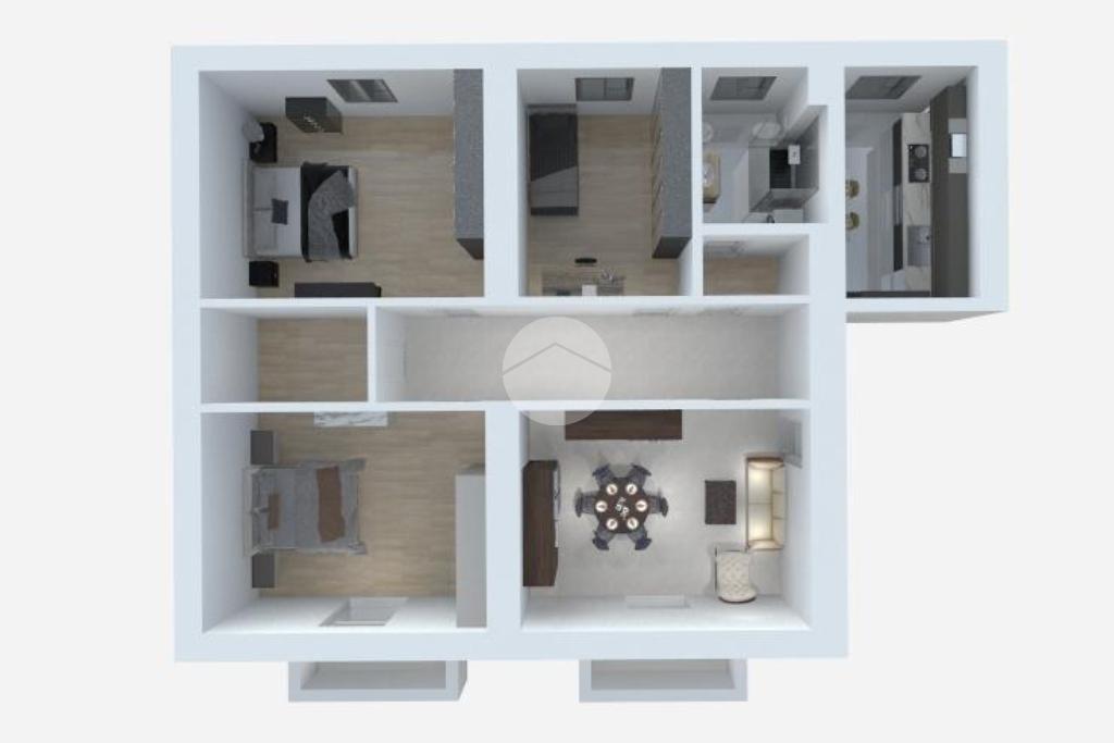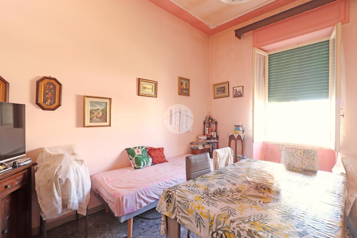 Alla sinistra dell’ingresso si apre un ampio soggiorno, particolarmente luminoso, con accesso diretto a un balcone affacciato su via Giovanni XXIII, ideale per godere della luce naturale e della vista sulla città.