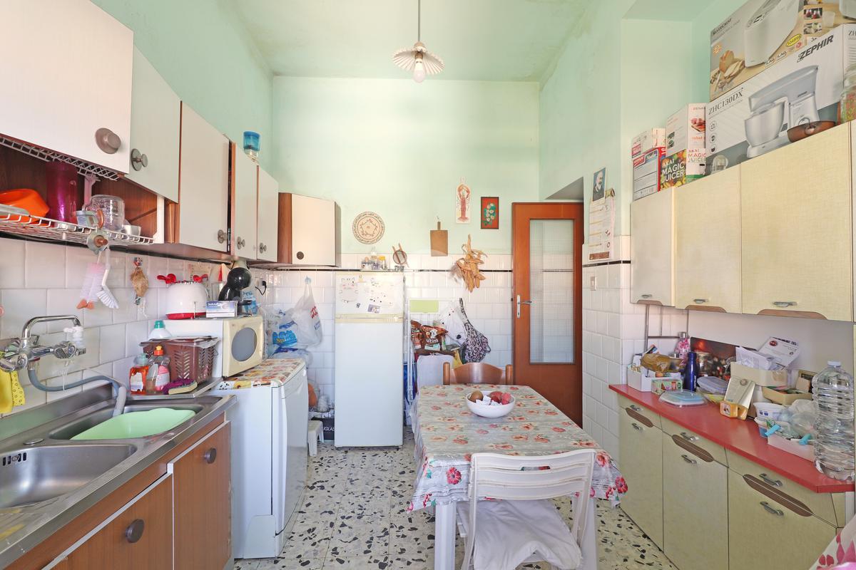 Sul lato destro, un disimpegno accompagna alla cucina abitabile, finestrata e ben ventilata, perfetta per chi desidera uno spazio accogliente e funzionale.