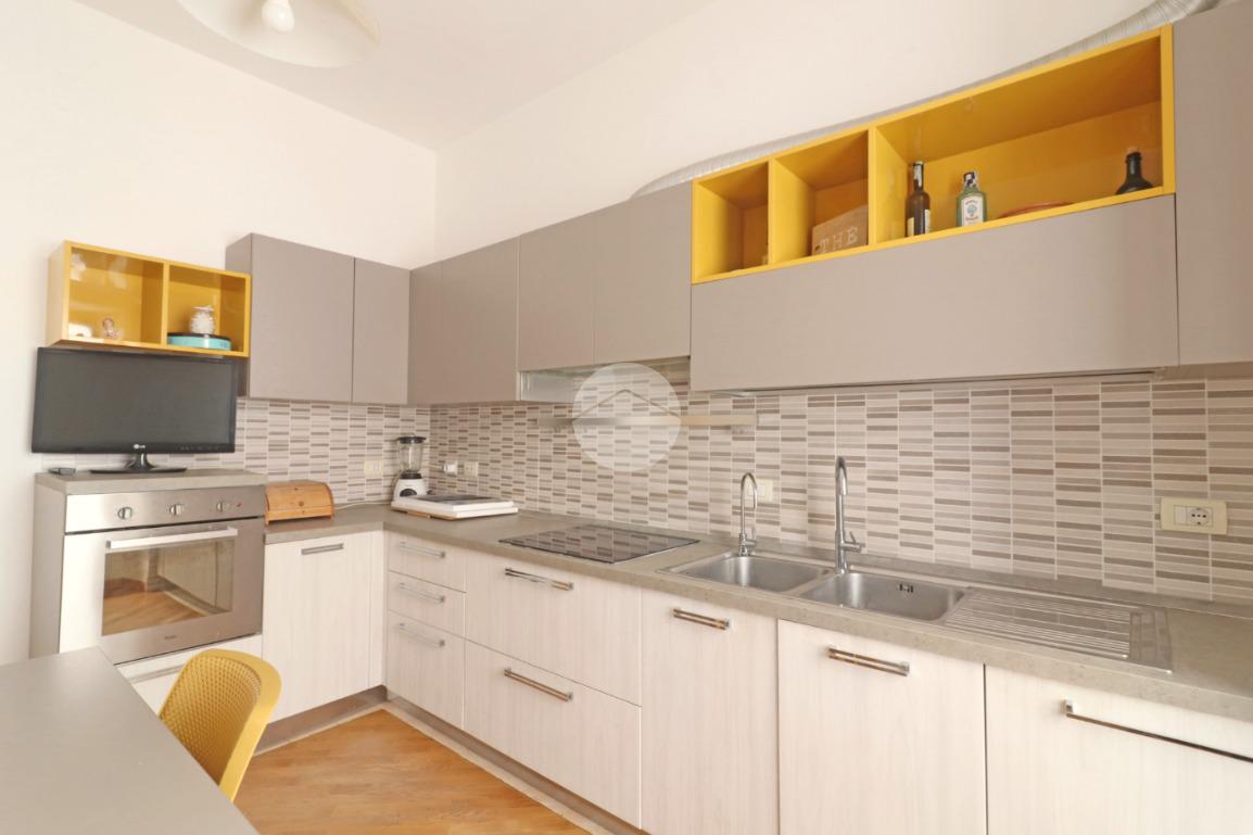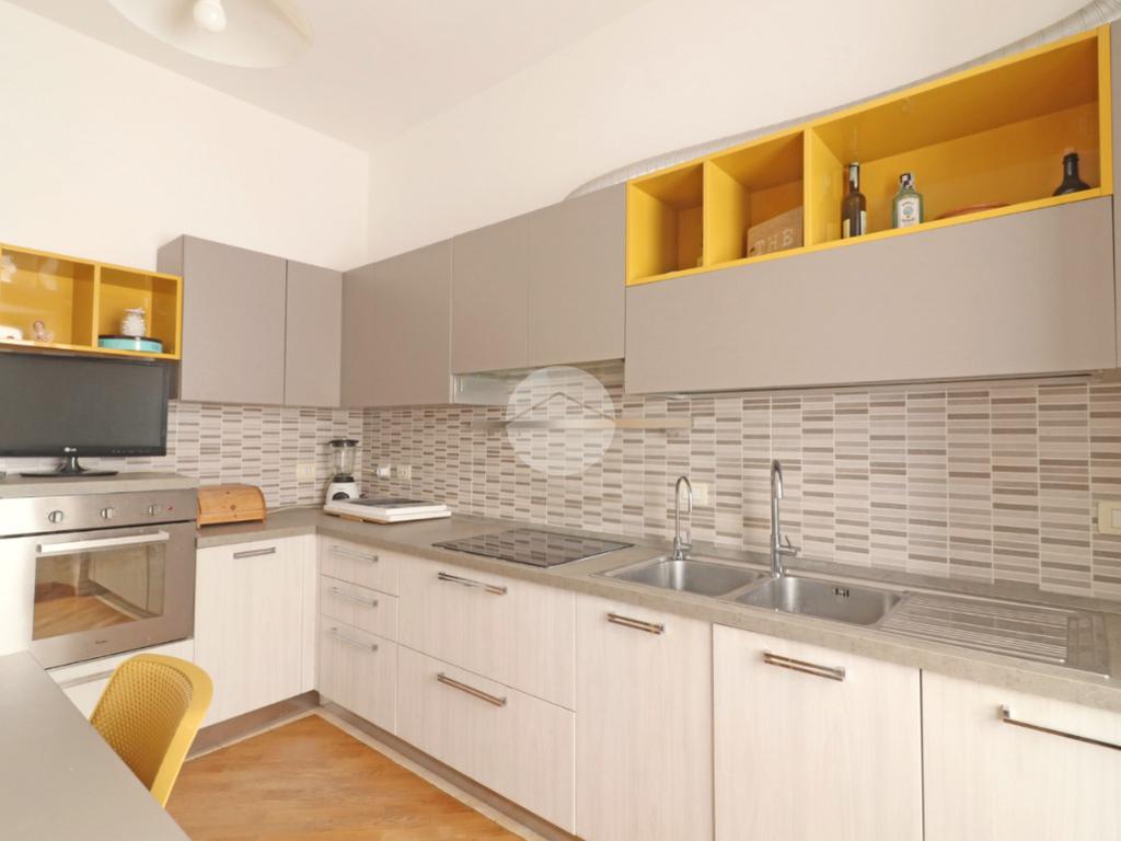 La cucina, realizzata su misura, pratica e ben organizzata, crea un ambiente funzionale e accogliente che valorizza al meglio gli spazi disponibili.