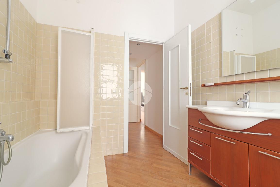 Il bagno, finestrato e completo di tutti i sanitari, è affiancato da una comoda zona lavanderia, pratica e funzionale.