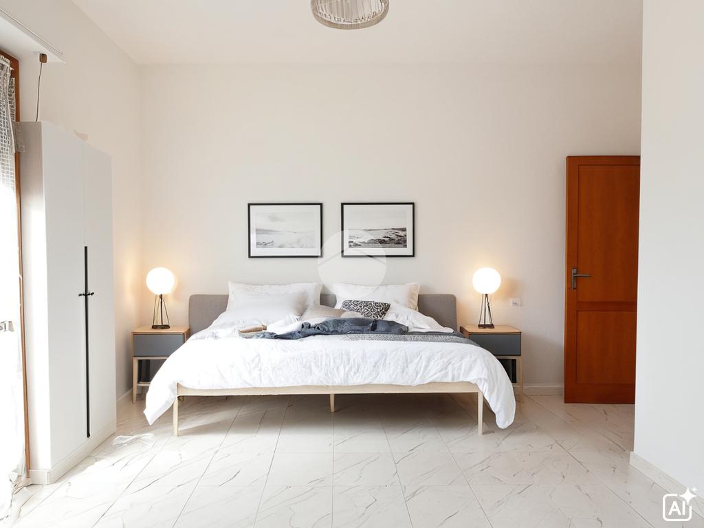 La zona notte comprende due camere matrimoniali, entrambe dotate di balcone.