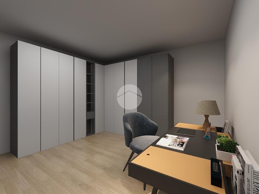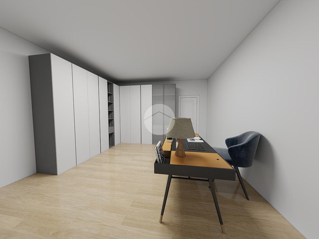 A sinistra dell'ingresso troviamo invece una camera da letto e uno studio.