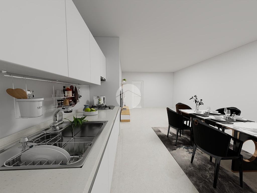 L'appartamento attualmente è composto da un ingresso che conduce a destra al soggiorno con angolo cottura.