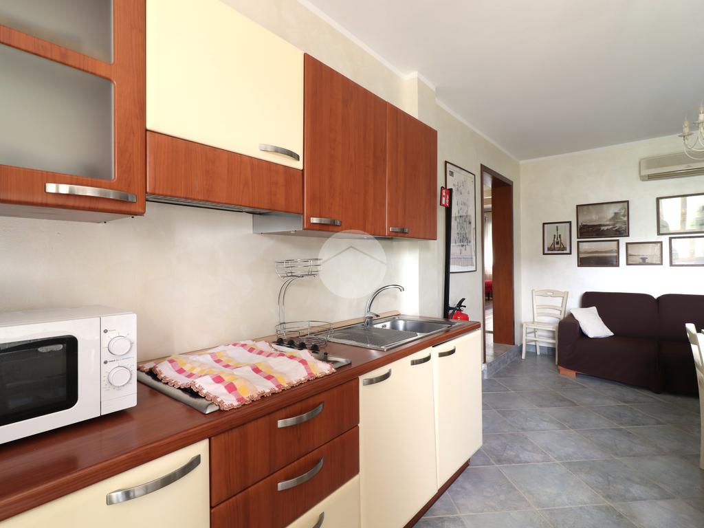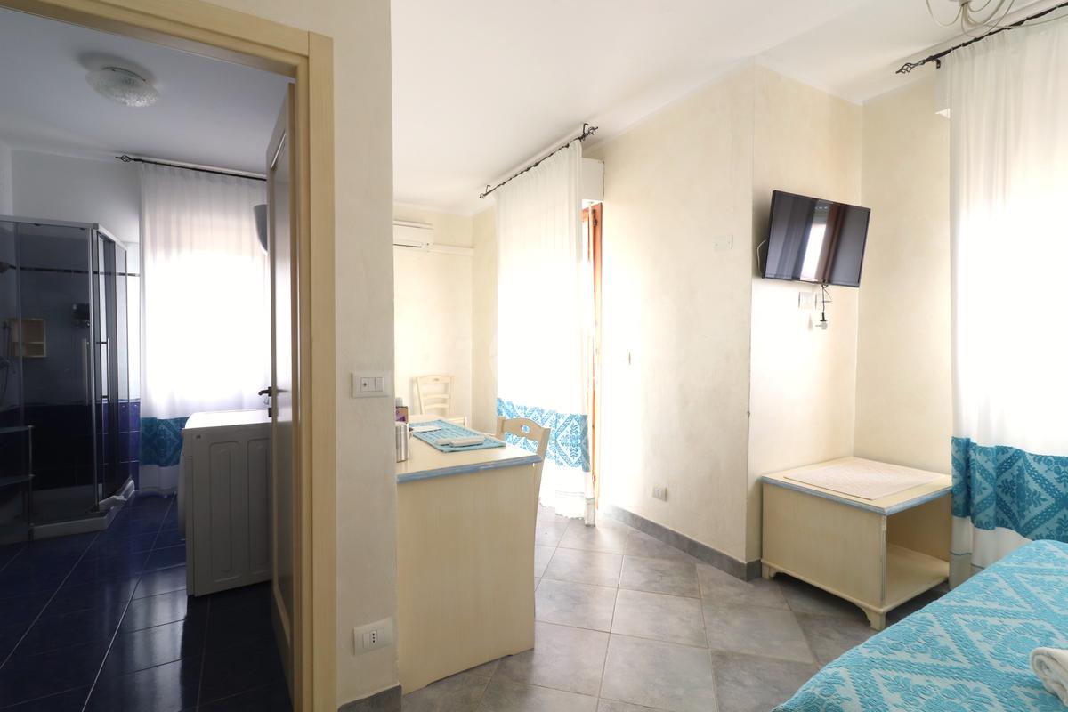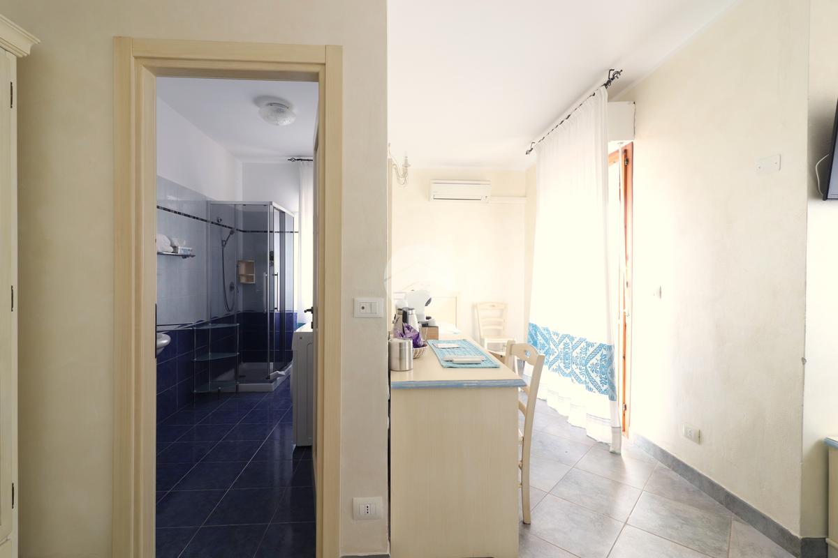 Varcata la porta d’ingresso si ha un ampio soggiorno, in cui trova spazio anche la cucina. L’ambiente viene valorizzato da una splendida vista su un uliveto, rendendo piacevole ogni momento vissuto al suo interno.