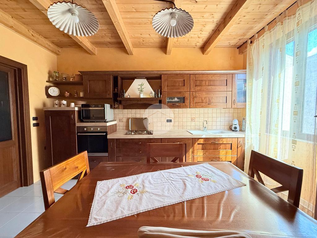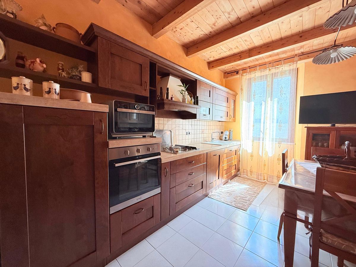 La cucina, ampia e abitabile, offre ottimi spazi di utilizzo ed è dotata di una pratica porta a scomparsa: una soluzione che permette di integrarla al soggiorno creando un open space, oppure di mantenerla separata per maggiore privacy.