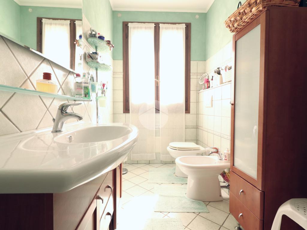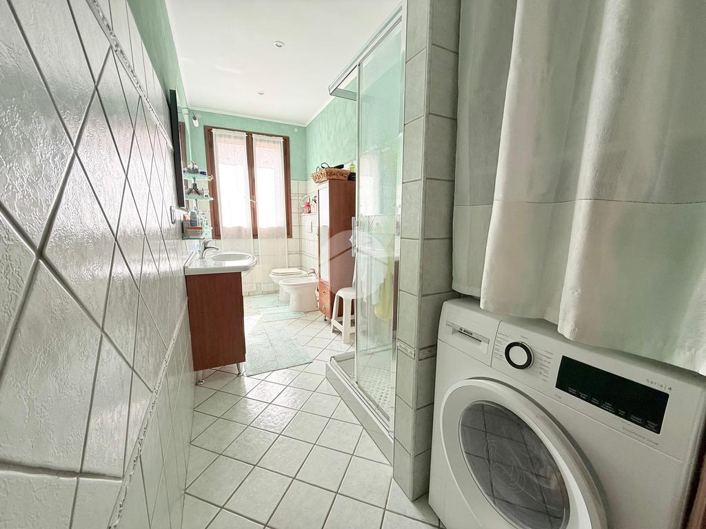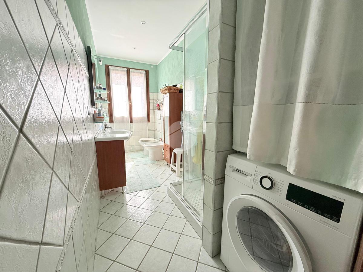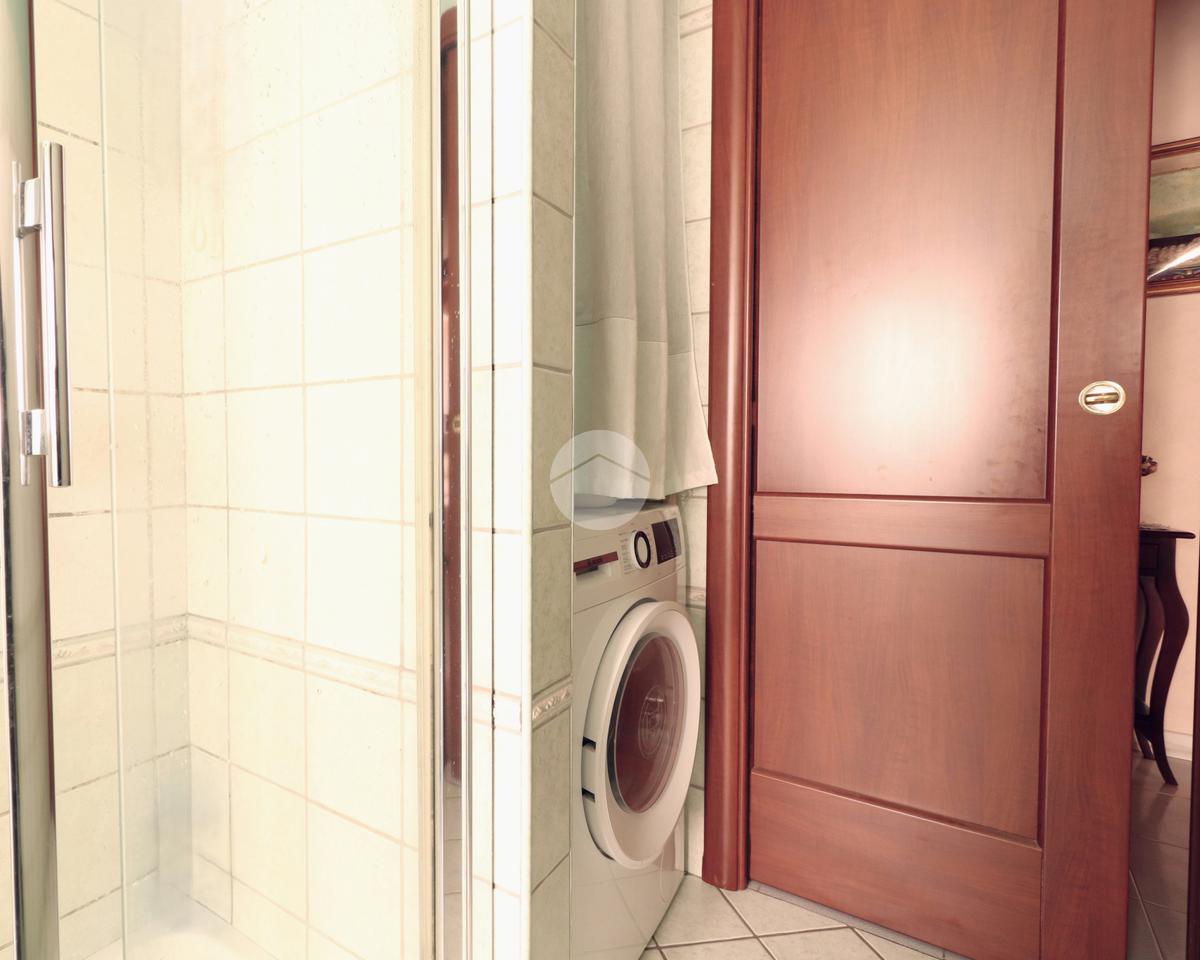 Il bagno è finestrato, completo di tutti i sanitari, e ospita anche una comoda zona lavanderia.