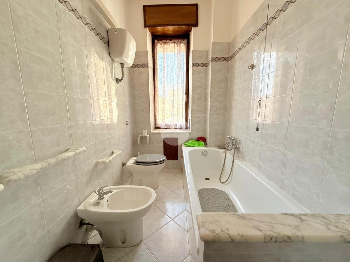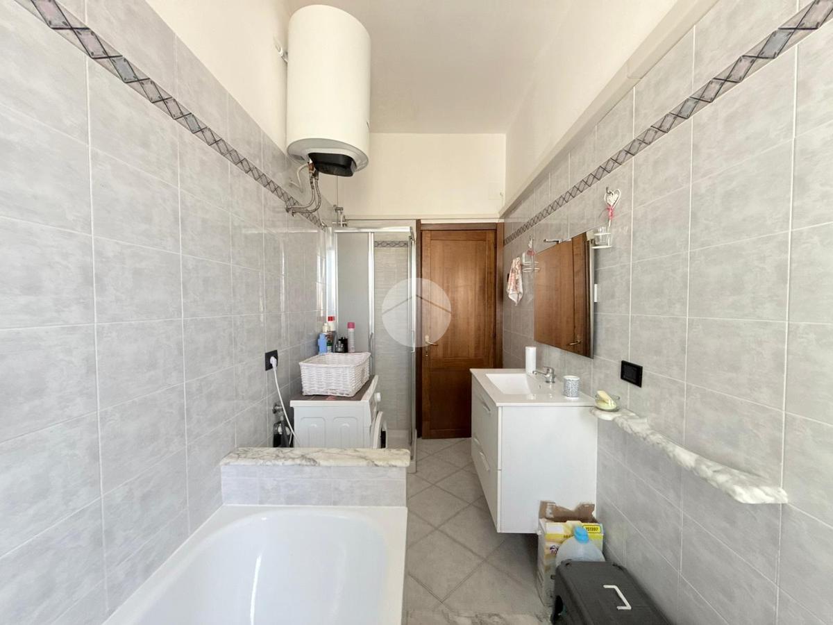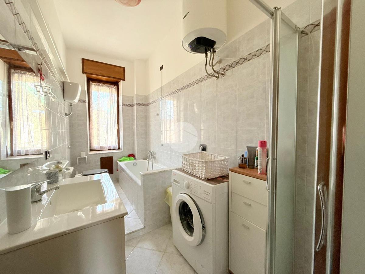 Il bagno finestrato è completo di box doccia, vasca e sanitari.