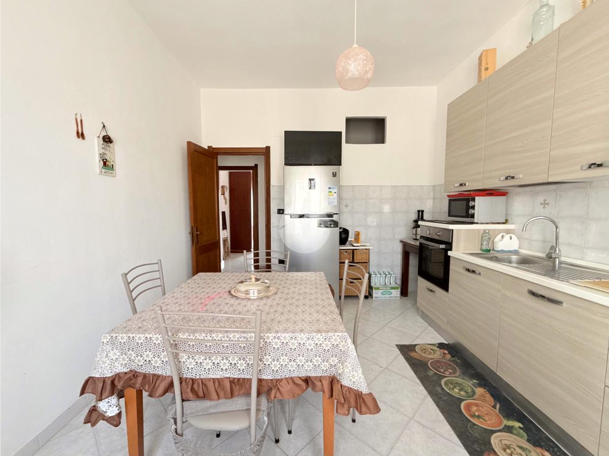 La cucina, abitabile, è impreziosita da una seconda portafinestra che permette l’accesso ad un secondo balcone rivolto verso il retro della palazzina.