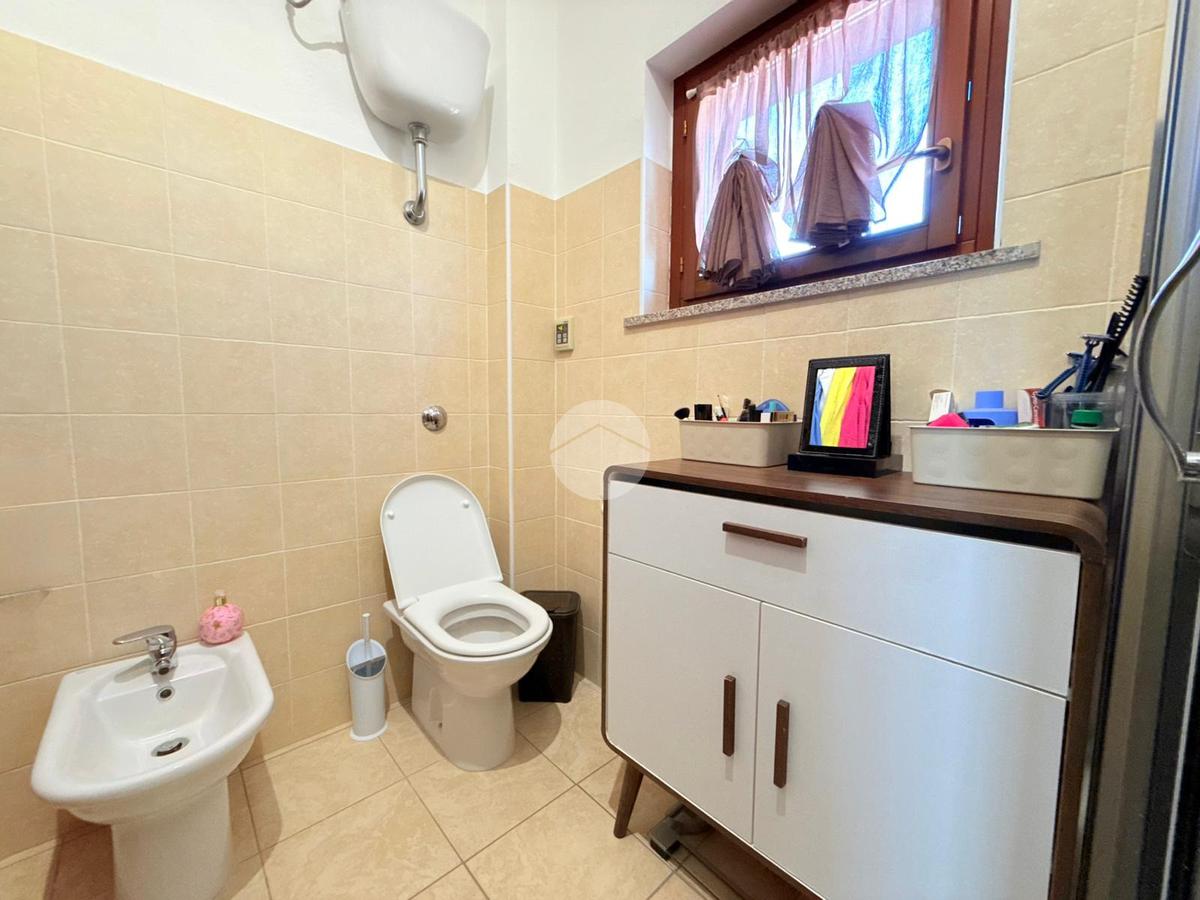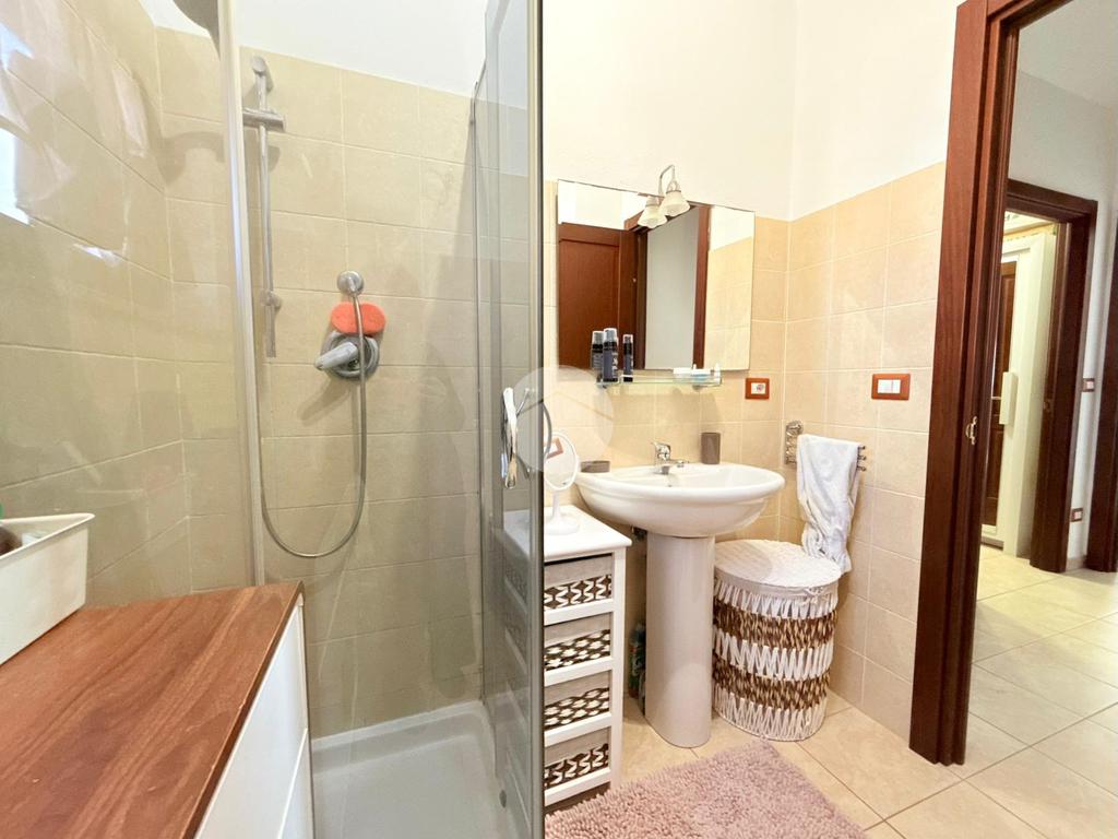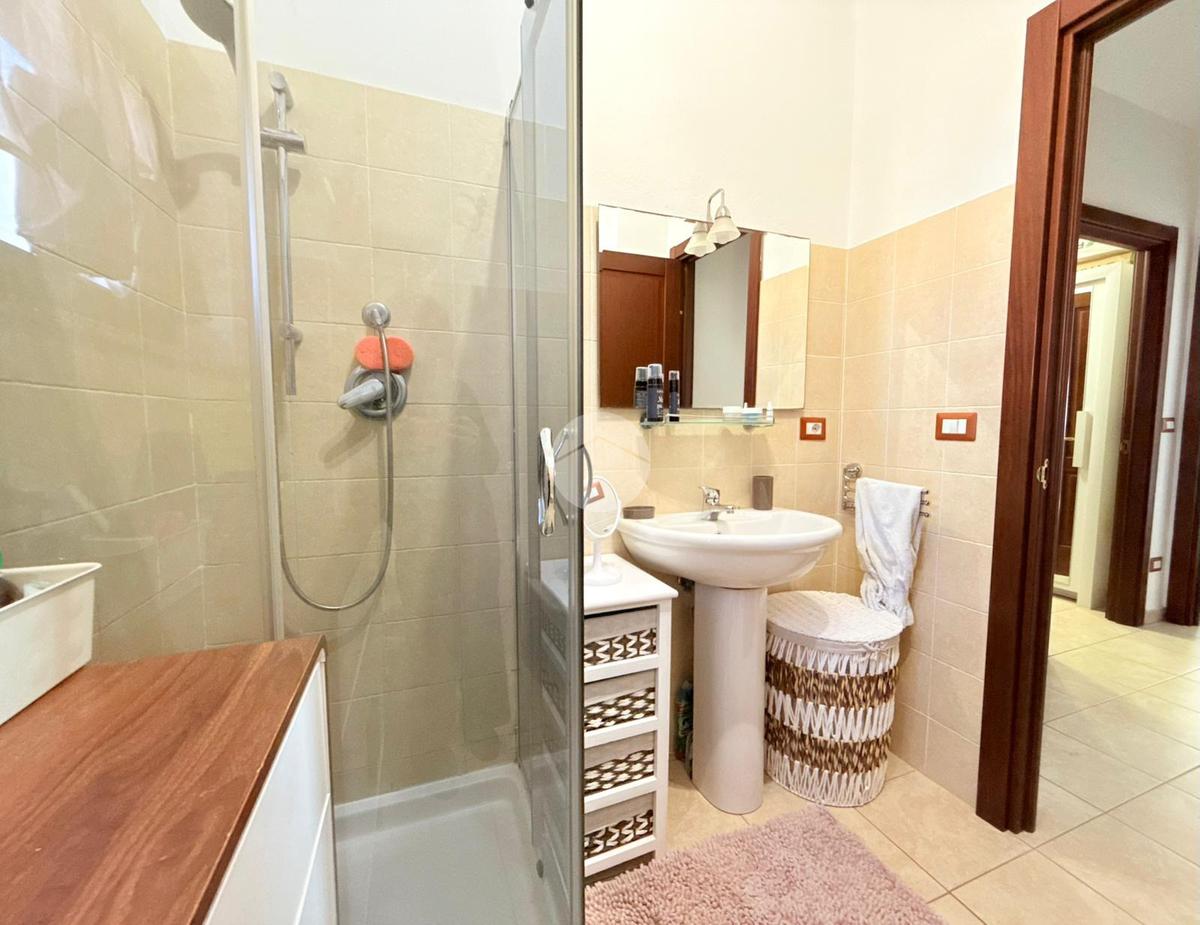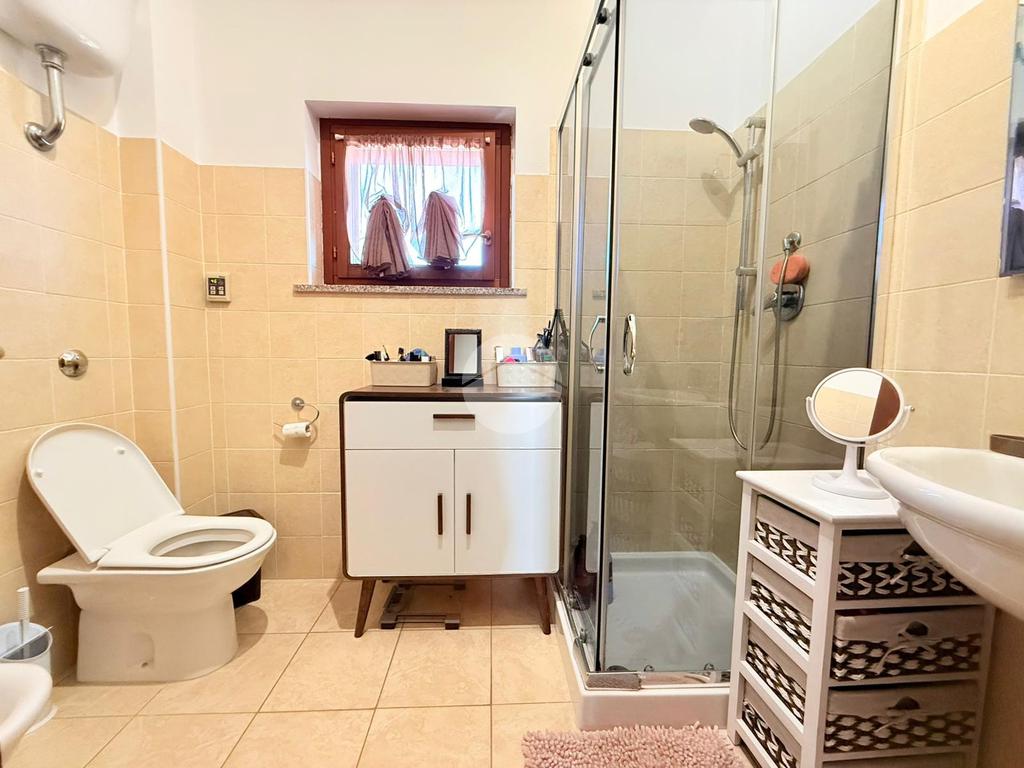 Il bagno è finestrato ed è completo di box doccia e sanitari.