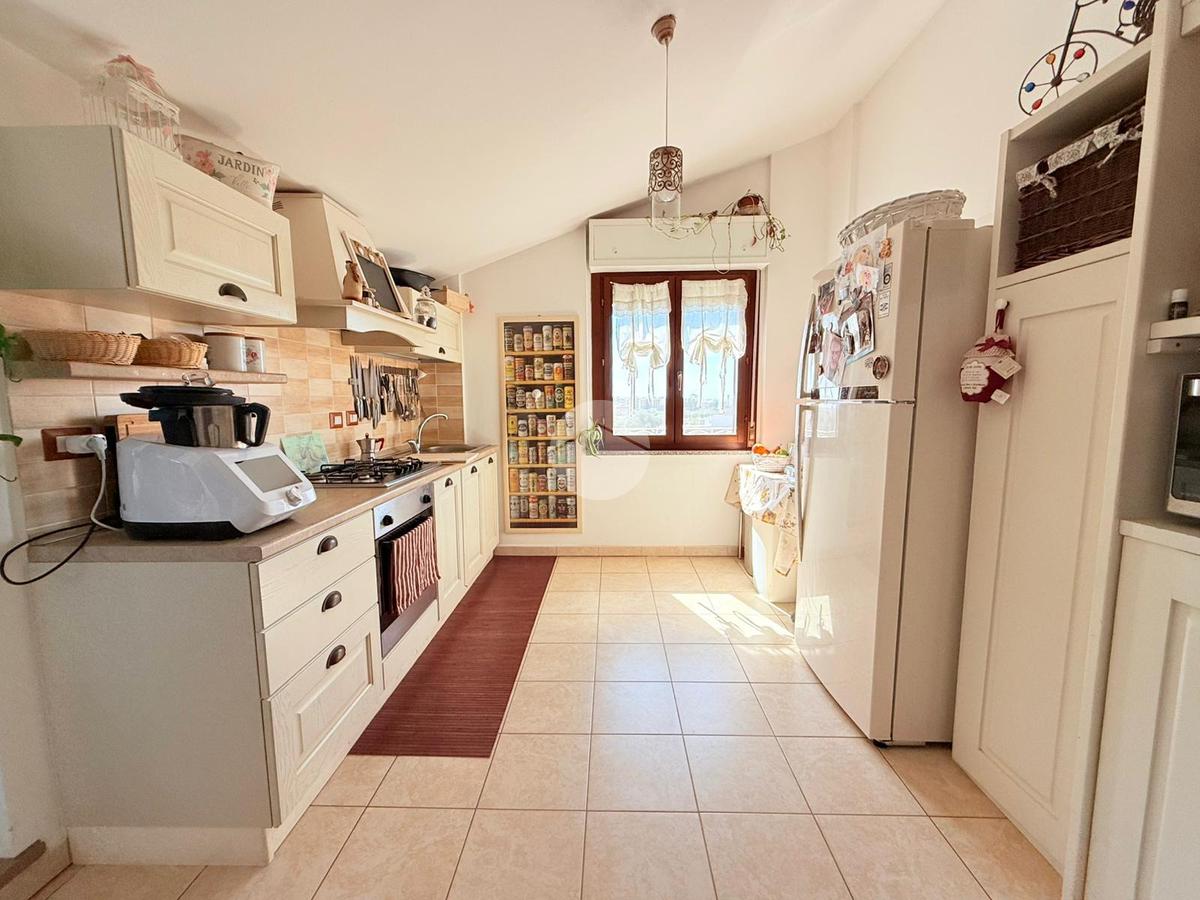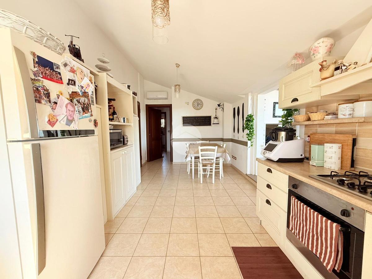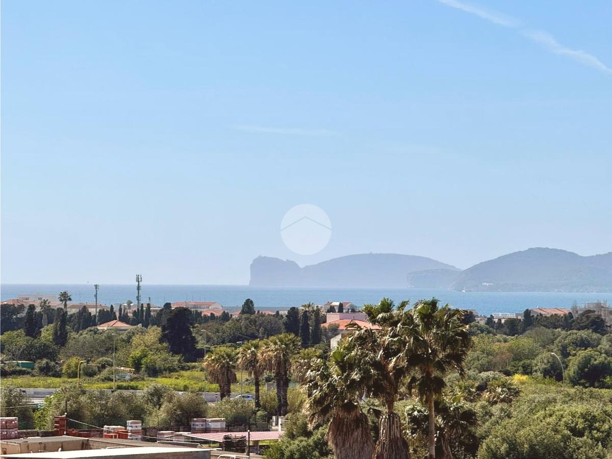 L’ingresso conduce direttamente alla cucina abitabile, uno spazio luminoso da cui si può godere una piacevole vista sul verde circostante e sull’inconfondibile profilo di Capo Caccia.